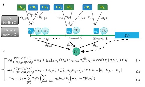 来自中国和美国的科学家紧密合作,开展了对基因调控研究中的核心的元件(转录因子TF,染色质调控因子CR和调控元件RE)之间的相互作用的研究,进而对基因表达的定量预测进行建模,发展了网络推断的新方法PECA。PECA重点对转录调控的三个关键环节进行建模:一,基于CR与序列特异性TF的相互作用推断CR在RE 上的结合位点;二,基于CR的结合和RE的可及性,预测RE的激活状态;三,基于激活RE上结合的TF预测目标基因的表达。PECA推断得到的条件特异的基因调控网络可注释数量性状位点(QTL) 研究给出的非编码区域的功能,从而对发生在非编码调控区域的点突变和结构变异与表型之间的联系给出分子机理层面的解释。该研究中利用了人类基因组计划之后的"DNA元件百科全书"计划 (Encyclopedia of DNA elements,简称ENCODE)中的数据,特别是部分具有匹配的染色质状态和基因表达数据的细胞类型,解读这些重要的数据,将极大地促进我们对后基因组时代基因调控网络的理解。